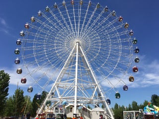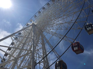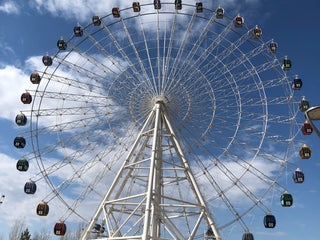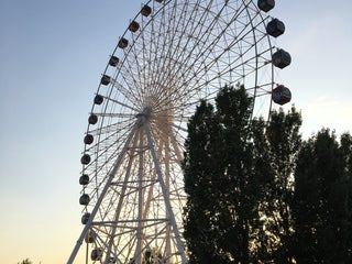 Ходили летом, дольше в очереди простояли, чем сделали один оборот на нем. Смотреть не на что, стекла бликуют и уже поцарапанные - оргстекло некачественное.) на раз можно сходить.)