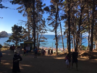 Es tranquilo, olas no tan grandes especiales para los niños, arena fina y lo mejor de todo el entorno, bajar por un bosque a la playa es muy especial, hay baños limpios, puestos de comida y snacks
