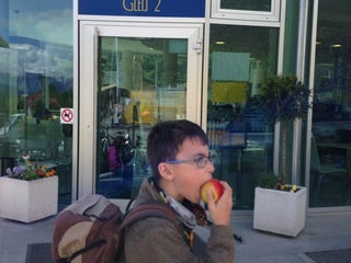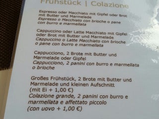 Die Terrasse in der Sonne und das Schinken-Käse-Toast