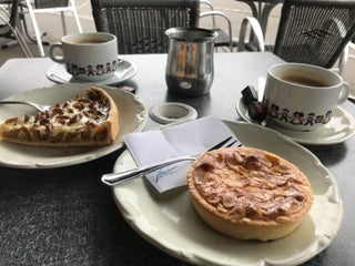 Himmlische Törtchen, angemessene Preise, man sitzt sehr schön im Trockenen unter der Markise und kann sich am Klappern der Störche ergötzen.