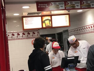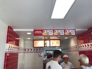 To slow for a 2 lane drive thru and its in n out thats know for fast service, food were good but the front cashier was kinda weird and not very helpful