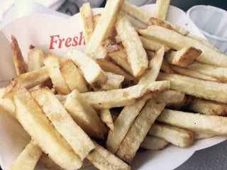 Fries and non frozen very good but then burger is not good very bad and process with also frozen meat