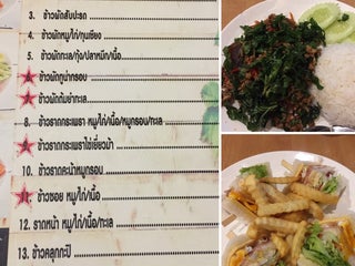 ลาบหมู ไข่เยี่ยวม้ากระเพรากรอบ