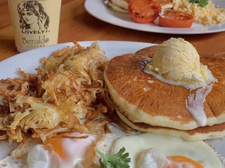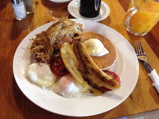 Food was exactly as it should be , pancakes exceptional , the variety of choices could meet any groups needs . The decor is quaint and warm totally unexpected. Service fast , kind and pleasant