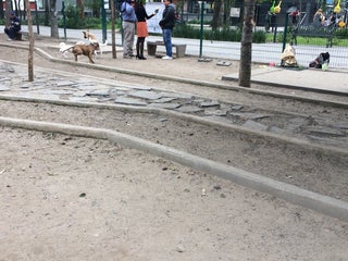 Mal diseño canino: lajas sueltas, agua estancada, arena nada propicia para la salud animal 😔🐶 hubieran tomado ejemplo del parque que antes de existía en este degradado #JardínPushkin.