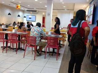 Não importa o horário, sempre tem fila. Poucos funcionários para atender os pedidos para viagem.