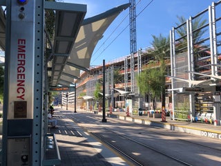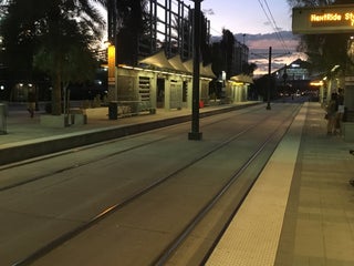 This is the main stop at the ASU tempe campus. During the school week the last lightrail heading eastbound arrives at 11:49 pm.