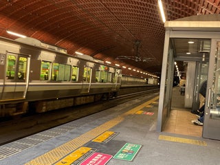 ホームの半分はトンネル残りは橋の上という珍しいホーム。夏は涼しく、冬は暖かい。