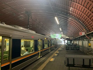 ホームがトンネル内と橋の上にある珍しい駅。列車の接近音がよく響きます。